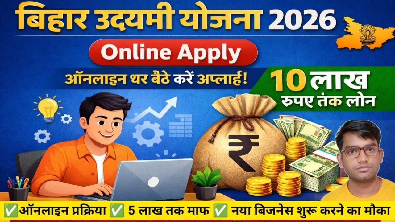 Bihar Udyami Yojana 2026 Online Apply — घर बैठे करें अप्लाई मिलेगा 10 लाख रुपए तक लोन, नया बिजनेस शुरू करने का मौका