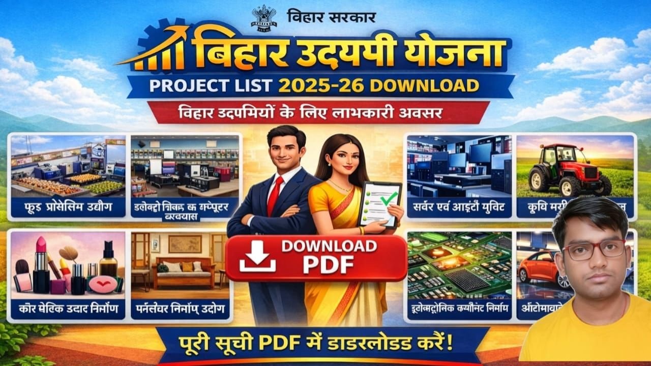 Bihar Udyami Yojana Project List 2025-26 Download — बिहार सरकार 10 लाख रुपए दे रही है इस योजना के तहत किस रोजगार पर कितना पैसा मिलेगा प्रोजेक्ट लिस्ट हुआ जारी