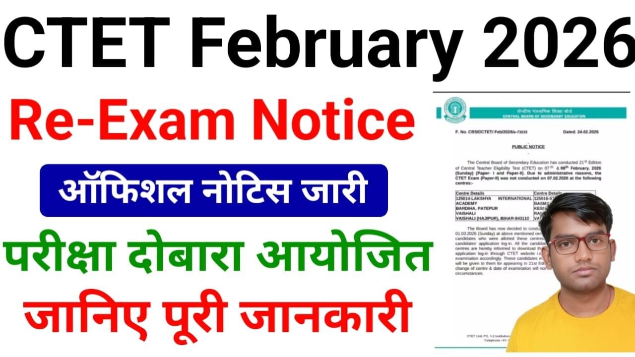 CTET February 2026 Re-Exam Notice हुआ जारी, परीक्षा दोबारा आयोजित जानिए पूरी जानकारी