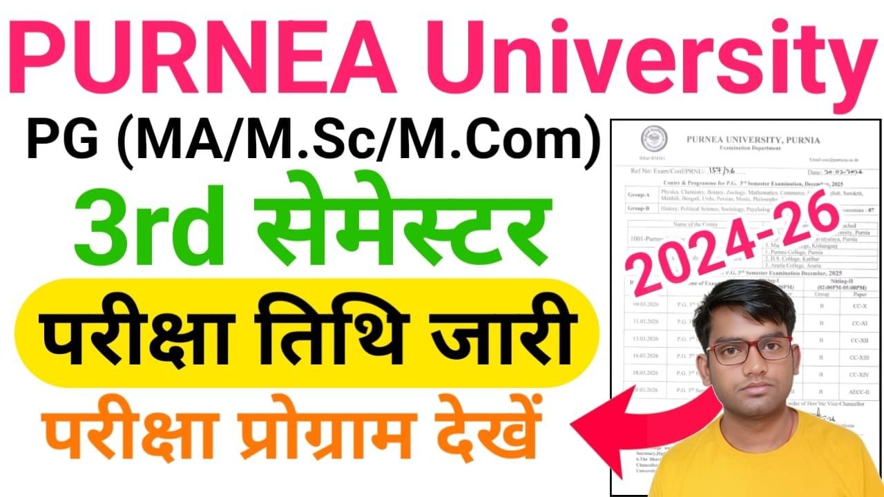 Purnea University PG 3rd Semester Exam Date 2024-26 —पूर्णिया यूनिवर्सिटी पीजी थर्ड सेमेस्टर परीक्षा प्रोग्राम जारी