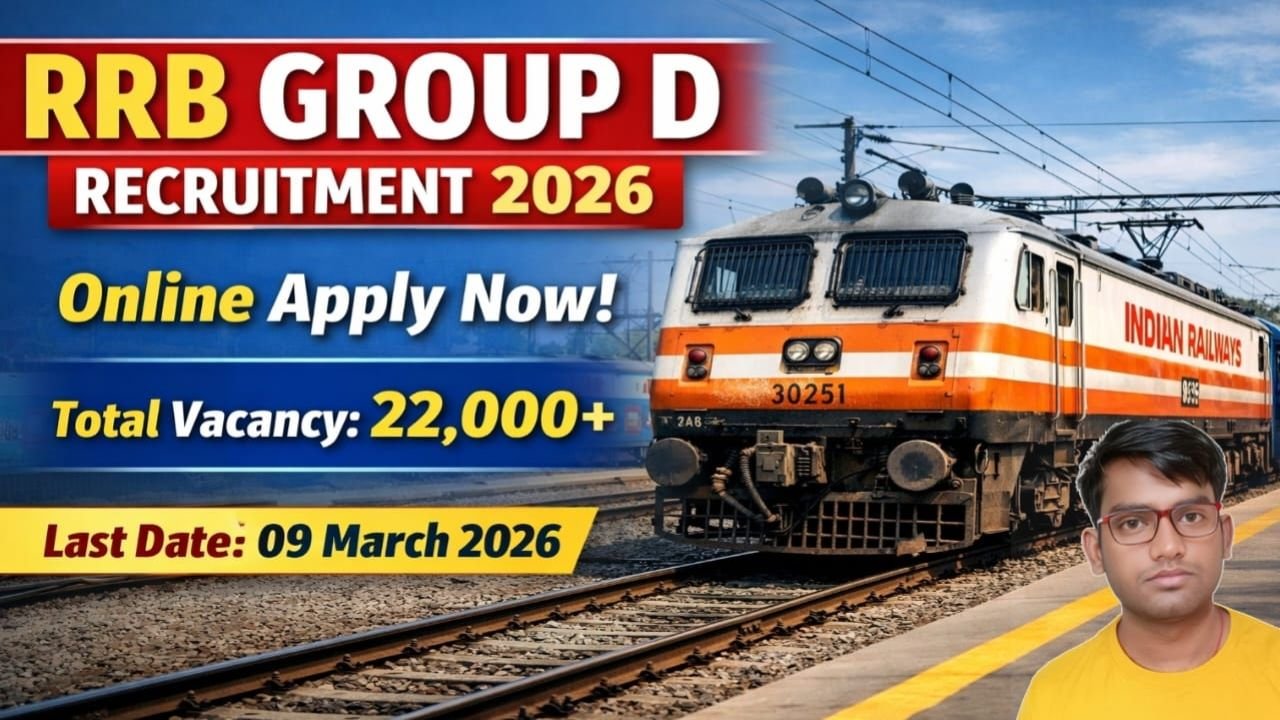 RRB Group D Recruitment 2026 Online Apply — रेलवे ग्रुप डी में निकली 22000 पदों पर बंपर भर्ती यहां से करें 10वीं पास उम्मीदवार ऑनलाइन आवेदन