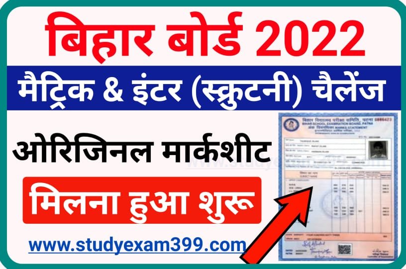 Bihar Board Matric Inter Scrutiny Orginal Marksheet 2022 : मैट्रिक इंटर छात्र-छात्राएं जो बिहार बोर्ड 2022 में परीक्षा दिए थे किसी कारणवश आप का रिजल्ट नहीं हो सका और आपने स्क्रुटनी यानी कि चैलेंज किया था