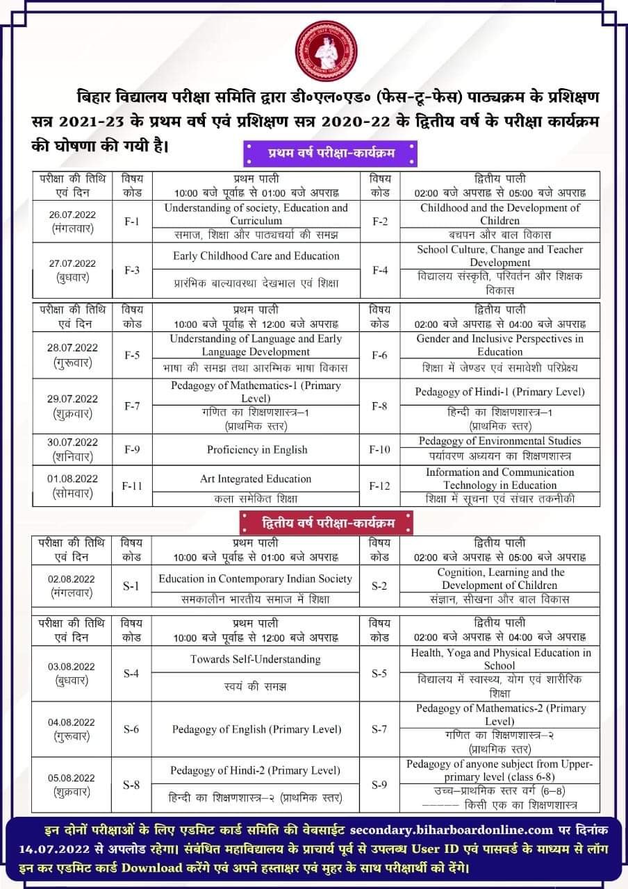 Bihar DElEd Exam Program 2022 (1st Year 2021-23 & 2nd Year 2020-22)